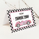 Pink Race Car Two Fast Girl Birthday Party Thank You Card