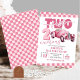 Pink Racing Car Two Fast Two Curious 2nd Birthday Invitation