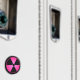 Radiation symbol design in black and rose pink.