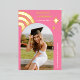 Celebrate your graduation in style with this unique pink graduation announcement! This eye-catching design features a modern arch with delicate stars and a whimsical rainbow, all printed in real gold foil for a touch of luxury. The pink background adds a touch of sophistication. Personalize it with your name, school, class year, and a special message to create a truly unique keepsake. Perfect for sharing your achievement with friends and family. Printed on high-quality card stock with a variety of paper types and finishes to choose from.