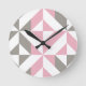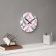 Pink Raspberry and Silver Geometric ZigZag Round Clock