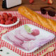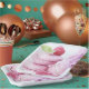Paper plates with a delicious photograph featuring a tower of pink macarons with raspberries placed around. Delightfully divine.
