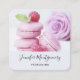 Business cards with a delicious photograph featuring a tower of pink macarons with raspberries placed around. Delightfully divine.