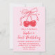 Pink & Red Bow Cherry Fruit 1st Birthday Party Invitation