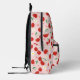 Presenting a cute and fashionable backpack that stands out with its vibrant cherry and daisy print in pink, red and white hues. This striking accessory not only serves as a bold fashion statement but also offers the unique opportunity for personalization, allowing you to add your name for a truly individual touch. Perfectly designed for school, work, or casual outings, this stylish backpack harmoniously blends practicality and playfulness, ensuring your essentials are both organized and easily accessible while showcasing your distinct style.
