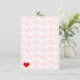 Light Pink Heart Pattern Background with a red heart at the bottom. A Valentine or for your writing paper. Buy as is or use Customize to add your own text. Vertical rows of pink hearts fill the background of the sheets. Each row points up or down. The valentine hearts are light in color so you will have no problem with the writing showing. A small red contrasting heart is in the bottom corner - keep or delete it.