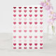 This greeting card features a neat grid of hearts arranged in rows and columns across the front. Each heart is the same shape, but the colors shift from deep red to softer pinks, giving the pattern a gentle, romantic flow. The hearts sit on a light cream background with a faint texture that feels warm and cozy. The overall look is calm and affectionate, like a simple reminder that love can be steady and sweet. There isn’t any text shown on the card front, so the heart pattern is the main message. Soft lighting keeps the colors easy on the eyes and helps the reds and pinks stand out without feeling too strong. It’s a lovely choice for a partner, a close friend, or anyone you want to make smile 💕❤️.