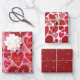 Pink Red Hearts Wrapping Paper Flat Sheet Set of 3