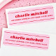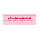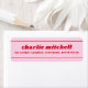 Pink and red or custom colors return address labels with thin borders top and bottom and your name in a retro font with the return address below. Fonts and colors can be customized with the design tool.