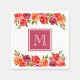 Floral pattern of red, orange, pink and burgundy flowers and green leaves on ANY COLOR BACKGROUND - we show white. Personalize with a monogram, initials, name, or saying. Great for a your party, birthday party, a gift, wedding reception, housewarming gift or for your own home decor.