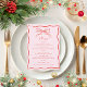 Bring vintage charm to your table with this pink and red retro bow French Christmas dinner menu. Featuring elegant typography and a classic layout, it's perfect for a holiday wedding, Christmas party, or winter soirée. Personalize with your own dishes to match your festive meal. Ideal for printing at home or professionally. A chic and stylish touch for your holiday dinner table décor.