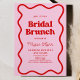 Pink Red Retro Wavy Border Bridal Shower Brunch Invitation