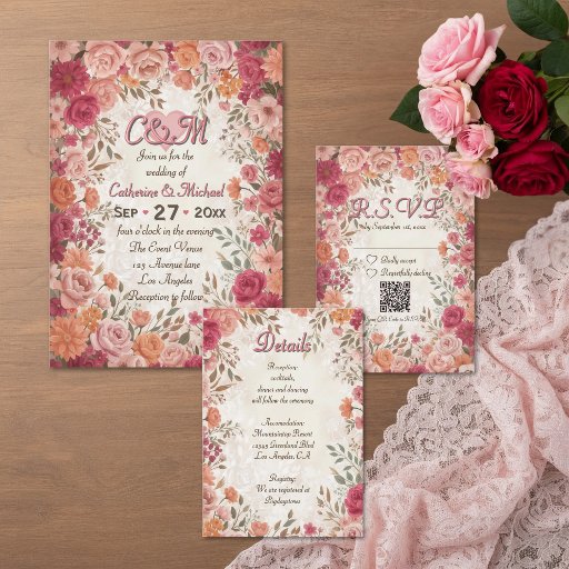 Express your gratitude in the most beautiful way with this romantic floral thank you card. Framed by lush watercolor blooms in blush pink, dusty rose, wine red, and soft peach tones, the scalloped design captures the charm of a blooming spring garden. The delicate botanical border surrounds your heartfelt message with warmth and elegance, creating a keepsake your guests will truly appreciate.