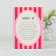 This vibrant and playful wedding table number seating chart card features a burst of color! Chic and fun fonts paired with a cheerful pink and red stripe background make this a joy to add to your wedding day. The design duplicates on the reverse side. Pair with the Blooming Joy wedding invitation collection for spring and summer weddings. Mix and match all the table number design options with the seating chart cards for an easy-to-find eye-popping display!