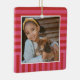 Pink red stripe cute simple one photo Christmas Ceramic Ornament