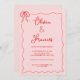 Pink Red Vintage Bow Wavy Frame Wedding Invitation