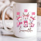 Celebrate Christmas vibes with a pink reindeer 'Ho Ho Ho' mug! Add a custom name for a personalized gift, perfect for girls, moms, and mothers this holiday season.