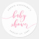 Baby Shower sticker featuring the words "Baby Shower" in a relax cursive script in pink against a white background.