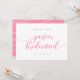 Stylish Will You Be My Junior Bridesmaid card featuring the words "junior bridesmaid" in a relax cursive script in pink against a white background. Card has a pink back side featuring overlapping white lines.
