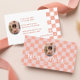Pink Retro Checkered Pattern Content Creator Photo Business Card