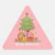 Pink Retro Christmas Tree Triangle Sticker