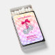 Our adorable design features two disco balls hanging from a pink ribbon bow on a wavy gradient background.