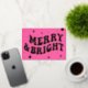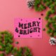 Pink Retro Groovy Merry & Bright Christmas Foil Holiday Card