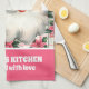 Pink Retro Santa Claus Christmas Floral Plaid Kitchen Towel