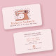 Classy business cards with a retro, midcentury-inspired design perfect for tailors, seamstresses, fashion designers, stylists, and more featuring a sewing machine illustration on a light pink background.