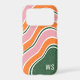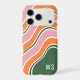 Pink Retro Wavy Stripes Custom Initial Monogram iPhone Case