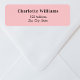 A pink colored background. Personalize and add your name, return address. Black text.