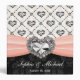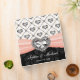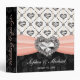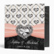 This glitzy and glam wedding organizer binder in pretty in pink and black has a printed heart shaped rhinestone look design on a satin bow and criss-cross solitaire diamond pattern. This girly and stylish wedding planner binder has a subtle, floral damask pattern background. It can be personalized with the name of the bride and groom, wedding date, album title on its spine and customized with a special message or favorite quote on the back. Artwork © Chrissy H. Studios, LLC. All Rights Reserved.