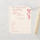 Pink vintage ribbon watercolor casual font baby predictions and advice card. Baby boy baby shower games