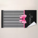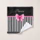 Name personalized bathroom towel set with a classic black and white stripes pattern and pink bow and ribbon design. To personalize it, type you name in the template field. Matching bath décor available.