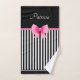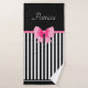 Pink Ribbon Black & White Stripes Pattern Name Bath Towel Set