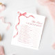 Have fun at your bridal shower/bachelorette with this cool game, featuring coquette inspired pretty pink ribbon bow and editable text. Customize it if necessary by clicking on the "edit using design tool".