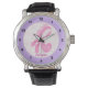 Pink Ribbon Breast cancer survivor & purple border Watch