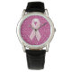 Beautiful classic black leather watch featuring Pink Ribbon & Faux Glitter design for breast cancer awareness