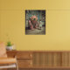 Decorate your home with this retro, quirky, kitschy illustration. A pink 50’s era robot interacts with a young girl in a white dress inside a muted colored, vintage hallway. The scene conveys a nostalgic, whimsical atmosphere. Makes your living room or bedroom a special place to relax and unwind.