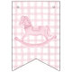 Celebrate your baby girl's arrival with this adorable pink gingham baby shower banner, featuring a charming watercolor rocking horse. The bunting spells out It’s a Girl! with alternating letter flags and matching horse illustrations — perfect for decorating dessert tables, gift areas, or backdrop walls.