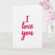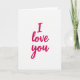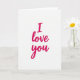 This card keeps things simple and direct, with the words “I love you” placed right in the center. The text is written in fuchsia, using flowing, cursive-style letters that look like they were written with a pen. Each letter has gentle changes in thickness and curve, which makes the message feel human and close. The background is plain white, so your eyes go straight to the words without anything else competing for attention. The strong contrast between the fuchsia text and the white space makes the message feel clear and confident ❤️. It’s a meaningful card to give because it says exactly what you feel, without needing extra pictures or explanations 🥰.