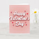 This Valentine's Day card features the message “Happy Valentine’s Day” right in the center. The words are in flowing white letters with a red shadow behind them, giving the text a raised, 3D look. The background is a soft blush pink with a faint grid pattern that feels like a tiled wall. Around the message, there are several bright red hearts and small starburst shapes, each outlined in white with a slight shadow so they look like stickers. The hearts are simple and cheerful, adding a sweet, romantic touch without feeling busy. The mix of pink, red, and white keeps everything warm and easy on the eyes, perfect for love or friendship 💕❤️.