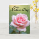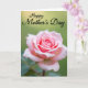 This card features a blush-pink rose centered in the design, its petals unfolding in soft layers that shift from pale edges to a richer pink at the curled middle ❤️. Gentle, diffused light falls across the flower, giving the surface a velvety look and drawing your eye inward like a quiet, affectionate gesture. Behind it, a smooth, out-of-focus green background creates depth, as if the rose is being admired in a calm garden moment. Near the top, a warm, sunlit glow adds a tender touch, like someone standing close and sharing a caring look. The words “Happy Mother’s Day” sit above the rose, set in a flowing style and colored in a dark tone that stands out against the lighter area. The text feels balanced and airy, leaving the flower to remain the main focus while still clearly readable 🌼. The rose’s layered petals show fine detail, with the deepest pink concentrated at the tight center and the softest blush along the outer rim.