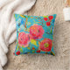 Pink Rose and Cherry Turquoise Customizable Throw Pillow