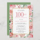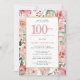 Pink Rose and Hydrangea Floral 100th Birthday Invitation