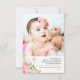 Whimsical watercolor pink roses and ornate cross floral girl photo "Baptism" "Thank You" design with a faux pink marble background on back. Simply add your photo, unique message and closing, child's name and the year. Composite design by Holiday Hearts Designs (rights reserved) with template placeholder photo via Pixabay.