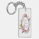 Pink Rose Blush Floral Frame Wedding Keychain