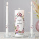Creative details with the natural floral, leaves and textures give the wedding unity candle a beautiful look. Watercolor hand painted with modern typography design.