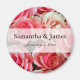 Elegant bouquet of pink roses wedding magnet personalized with your names and date.