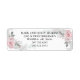 Silvery white iridescent foliage and pink sweetheart roses and greenery diagonal corners. Your name and address centered in modern contemporary style text . This is part of a wedding stationery collection with matching wedding accessories. Design created for the BarefootBride™ © by WhimsicalArtwork™